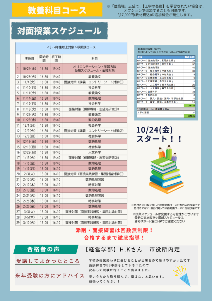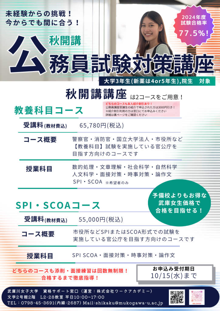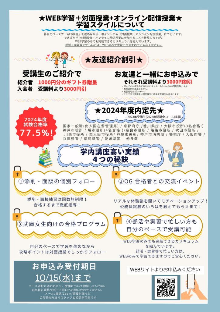 ☆10/15申込締切☆追加募集☆2025年度「公務員試験対策講座 」秋開講コース申込受付中